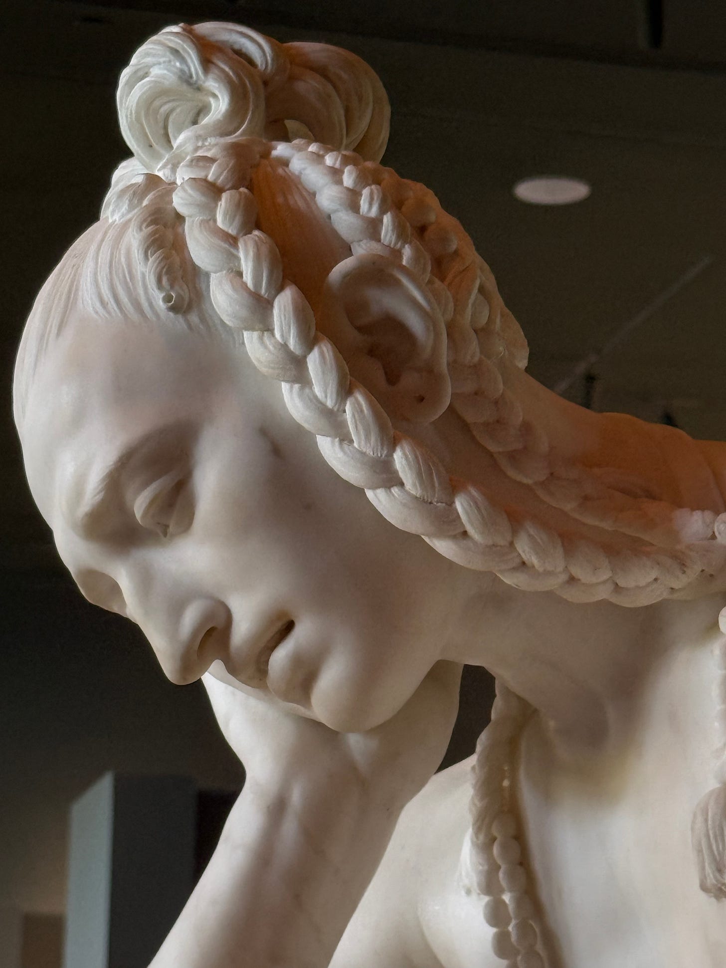 Recalling Mara Label’s fabulous leafy gold collars there, and the unattributed real feather headdress on floor five, I bite into a Rise Bakery pain au chocolate, driving out of town, the leaves of puff pastry falling.