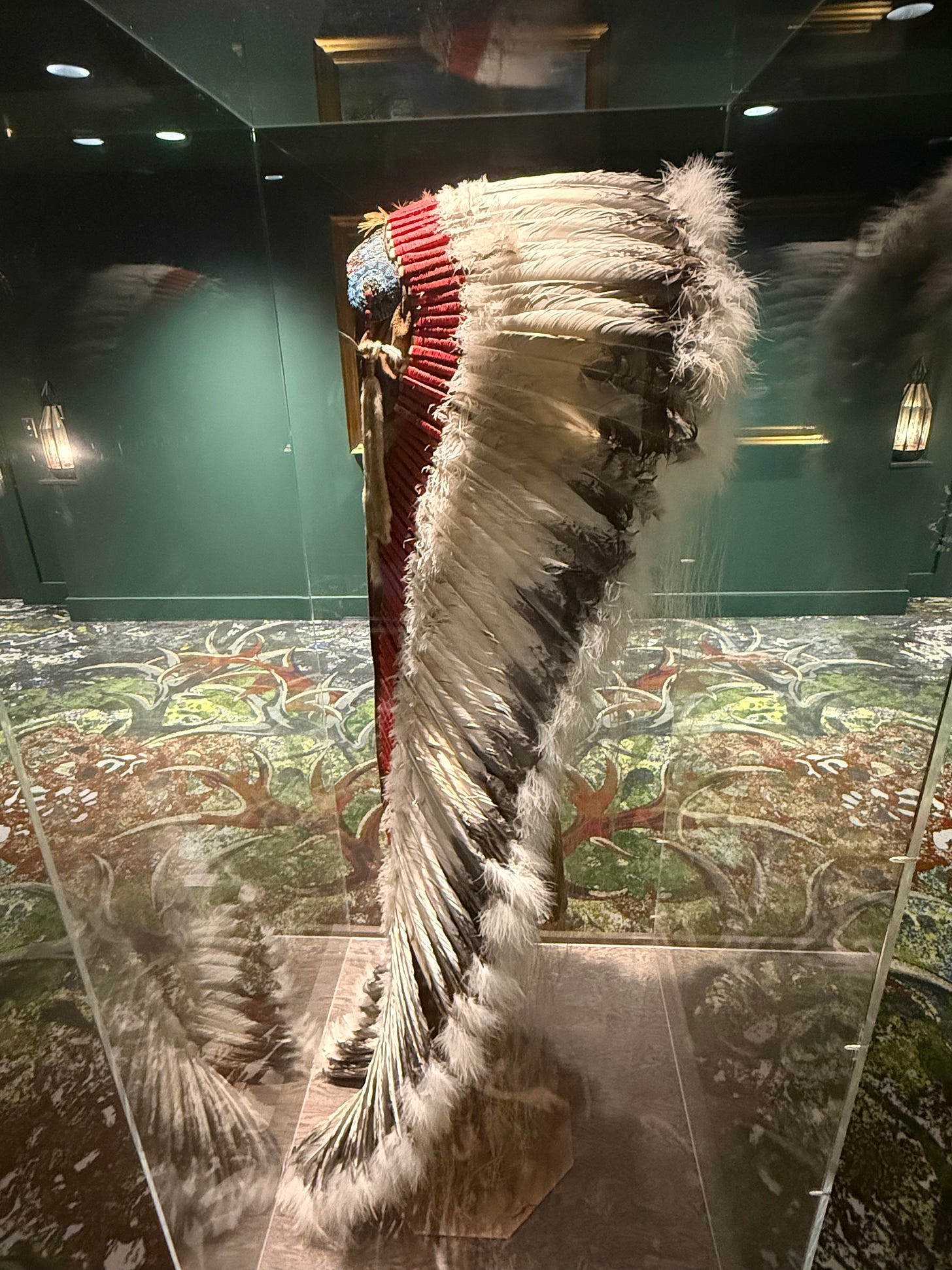 It’s grand and frankly a little weird from my Chapel Hill/Durham perspective. My first thought is that Greenville didn’t get the memo about cultural appropriation. Native American’s rise tall on statued horseback. The stairwells are lined with colorful Native American portraits. I’m put-off at first, which means I’ll return.